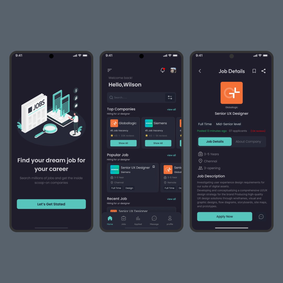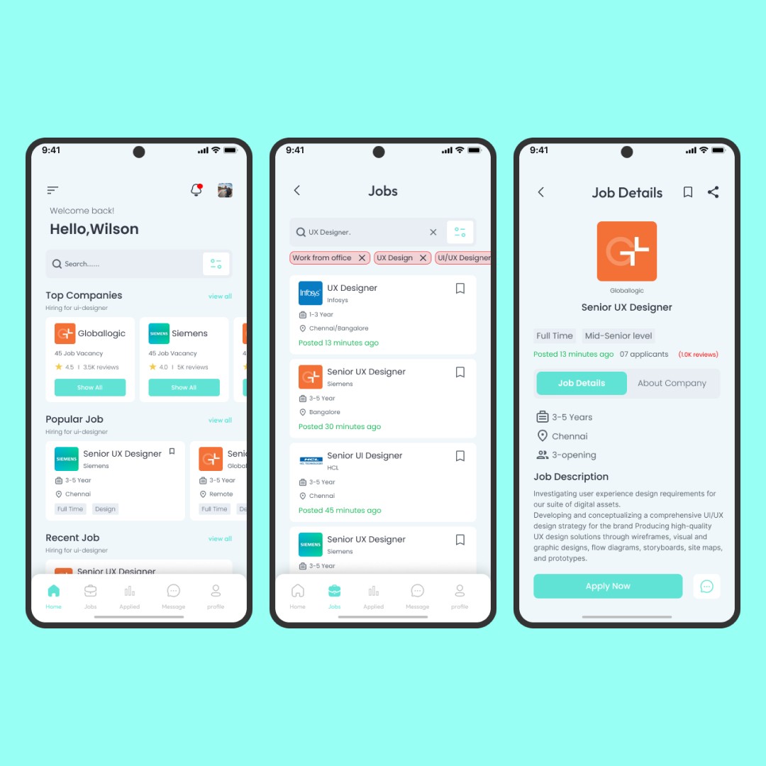 This project focuses on designing a modern Job Search Mobile Application that helps users easily discover, filter, and apply for relevant job opportunities. The app is tailored for professionals seeking UI/UX and tech-related roles, offering a clean interface, clear job listings, and a smooth application flow.